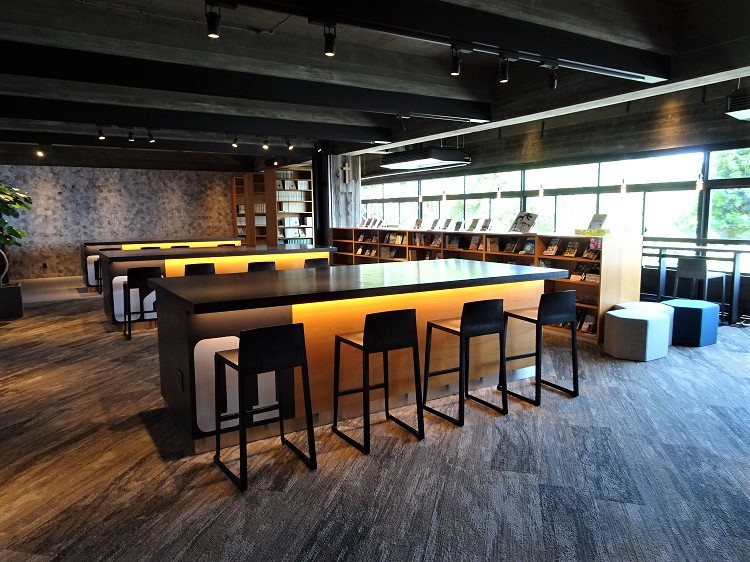また、飲み物も提供する図書室では、仲間と対話ができる空間ができています。時には本、時にはタブレットを持ち、生徒が協働して探究活動をしていく様子が目に浮かびます。